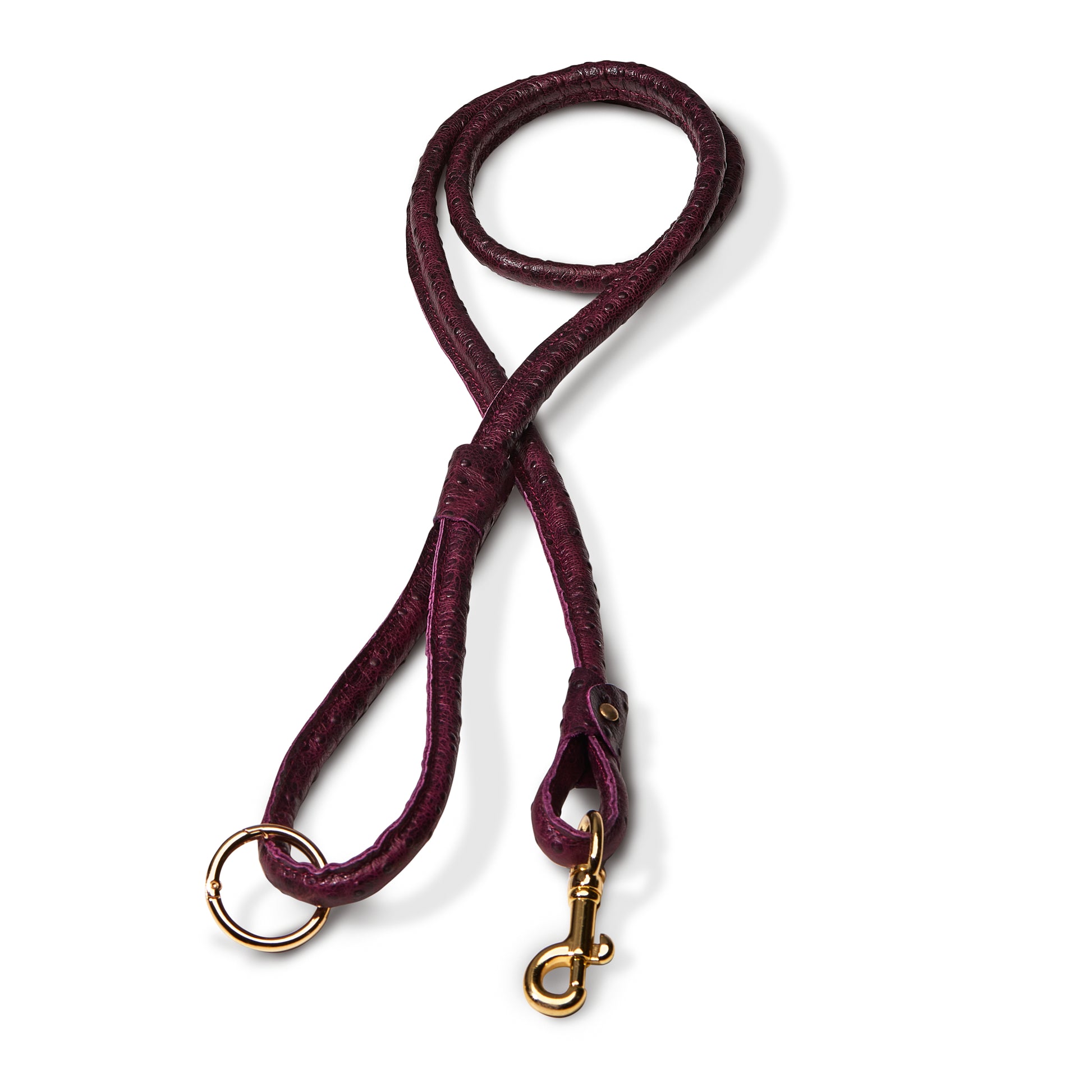 Let your dog be the envy of the park with this elegant leather leash. Designed in NYC and crafted with gorgeous high quality, genuine Ostrich Pattern (stampatto) leather, set off by the gold plated brass detailing. Pair in a matching set or create a mixed ensemble.