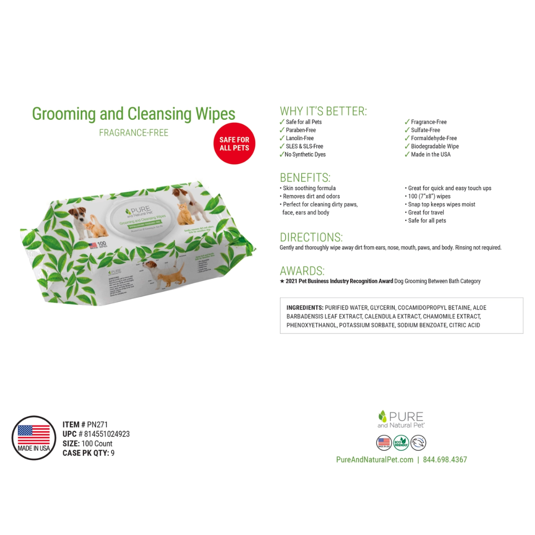 Pure and Natural Pet - Grooming and Cleansing Wipes (Fragrance Free) 100 Wipes