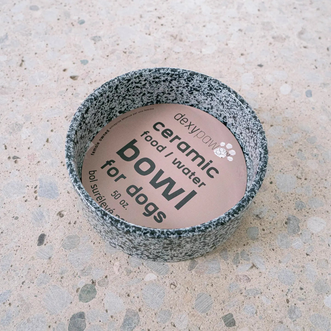 Salt & Pepper Ceramic Dog Bowl