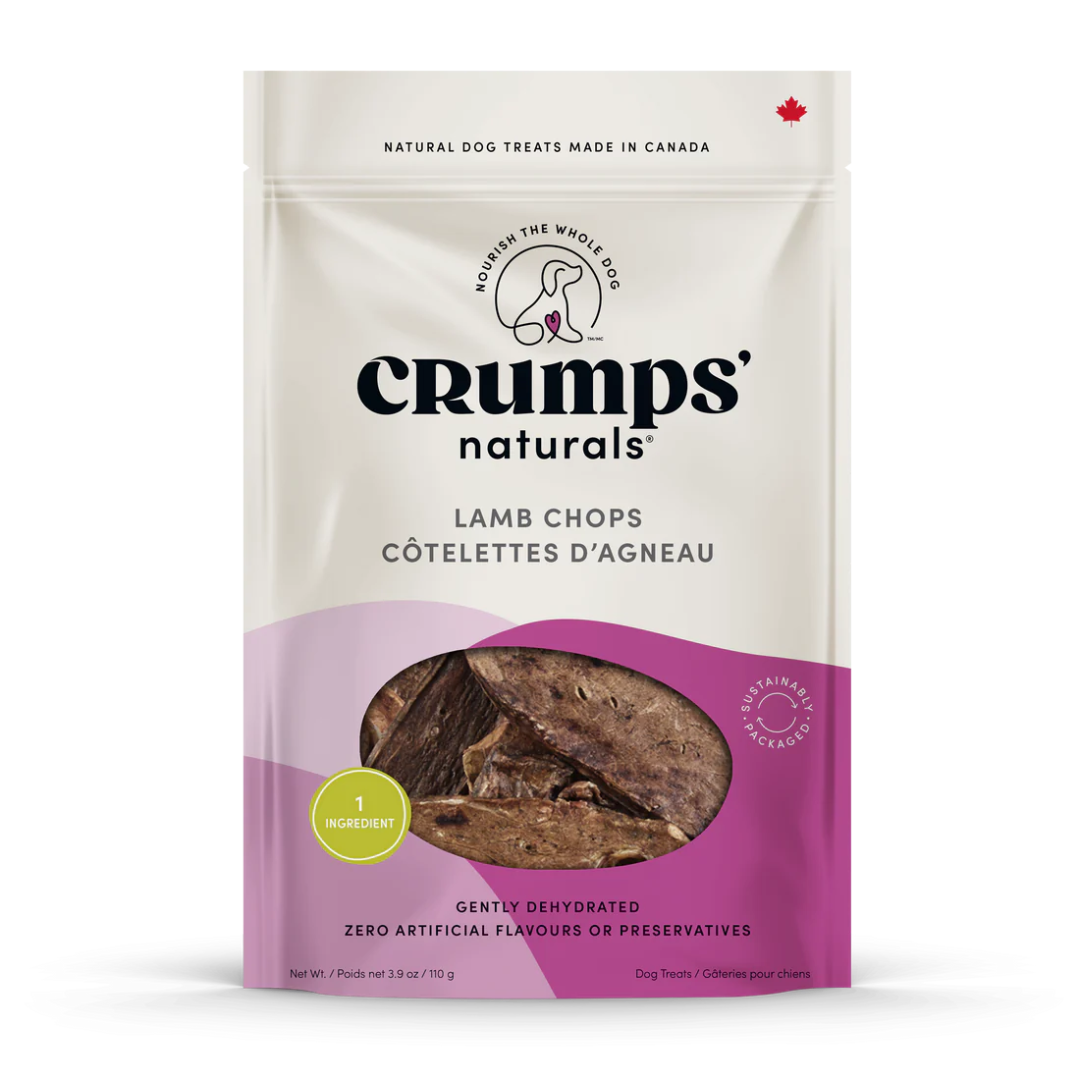 As fur-esh as can be, Crumps' Naturals Lamb Chops Dehydrated Dog Treats are made with 100 percent lamb lung—that’s it! You won’t find any grains or other additives, so they’re especially grr-eat with fur-iends with allergies or sensitivities. Plus, lamb is an excellent alternative single-source protein. Treat your pup to these goodies during training or as a surprise throughout the day. They’re made for friends of all ages and breeds. Crumps' Naturals proudly makes these treats in Canada with love for your furbaby.