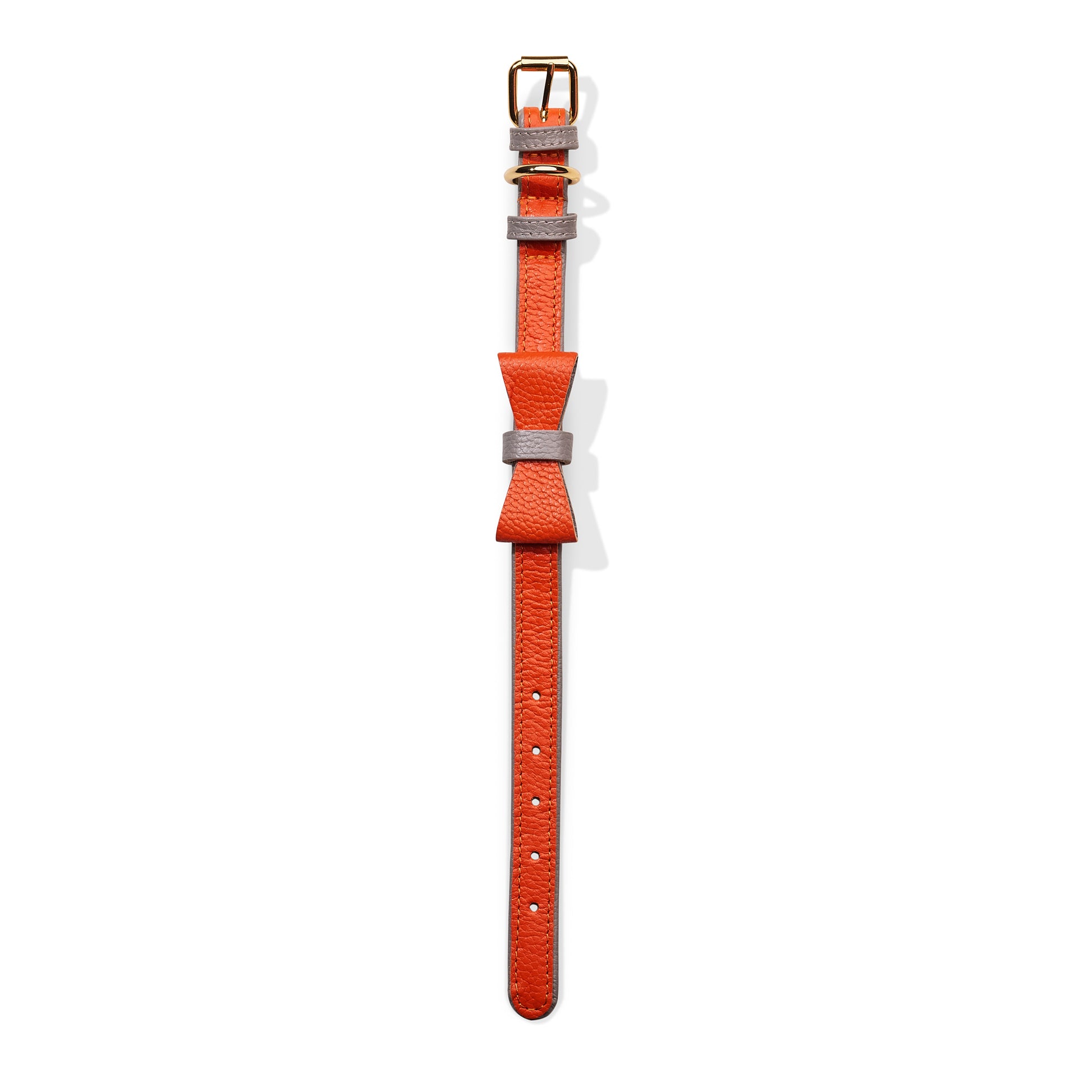 Our most lux and cute bow tie collar designed in NYC is hand-stitched and crafted in premium light leather. Set off by gold/silver plated buckle detailing. Pair in a matching set or create a mixed ensemble.